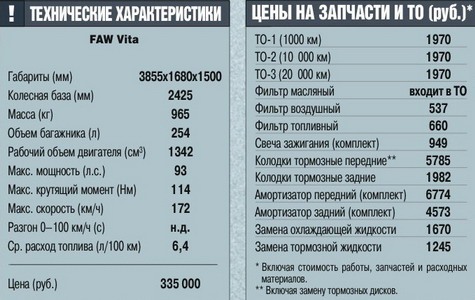 FAW Vita однозначно найдет своего покупателя, тем более что, в отличие от многого из того, что сейчас представлено на нашем рынке, это действительно достаточно качественный, а главное, вполне современный продукт. Немаловажно и то, что за ту сумму, которую оговаривает дилер, вы получаете полностью укомплектованный автомобиль, что само по себе также приятно.